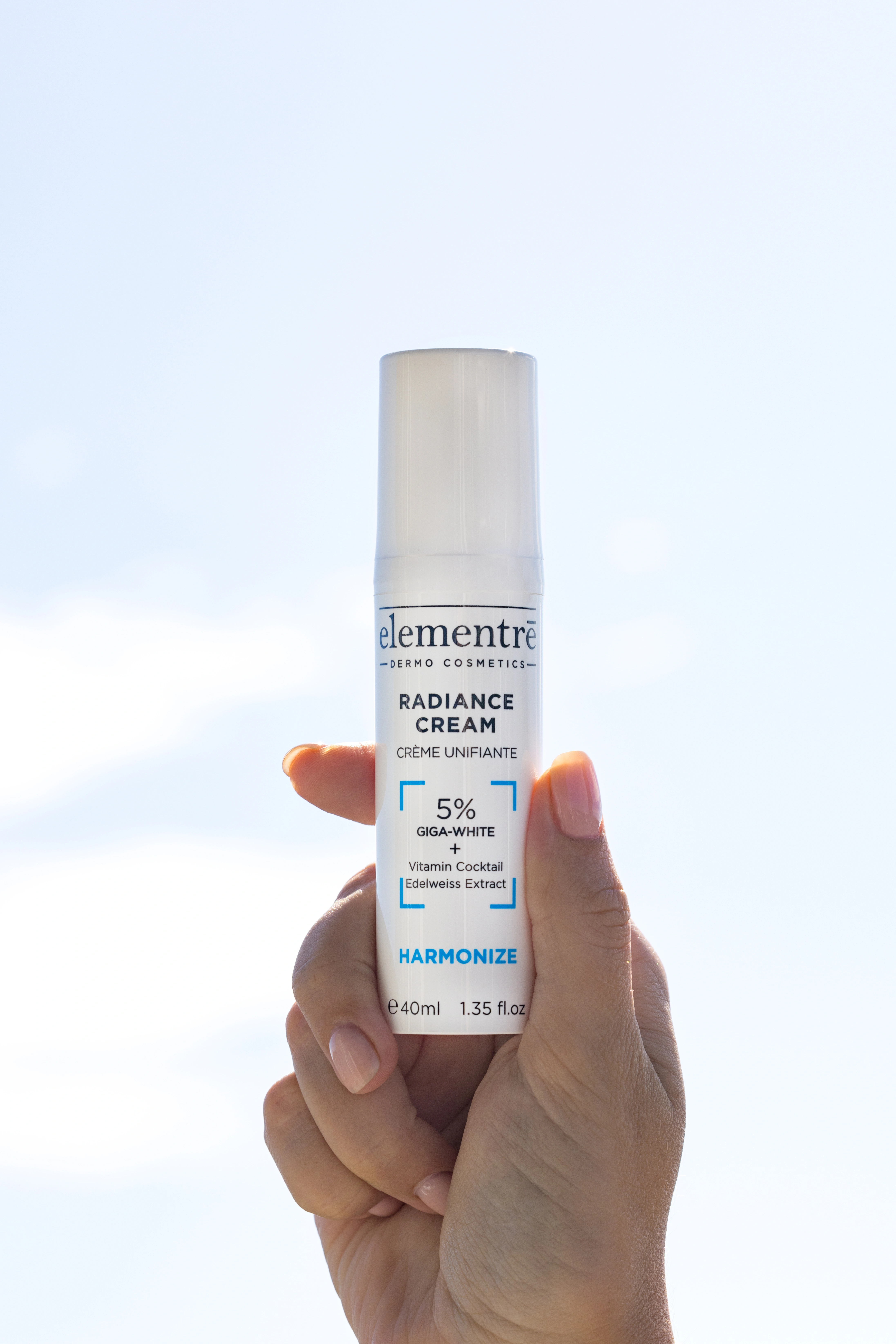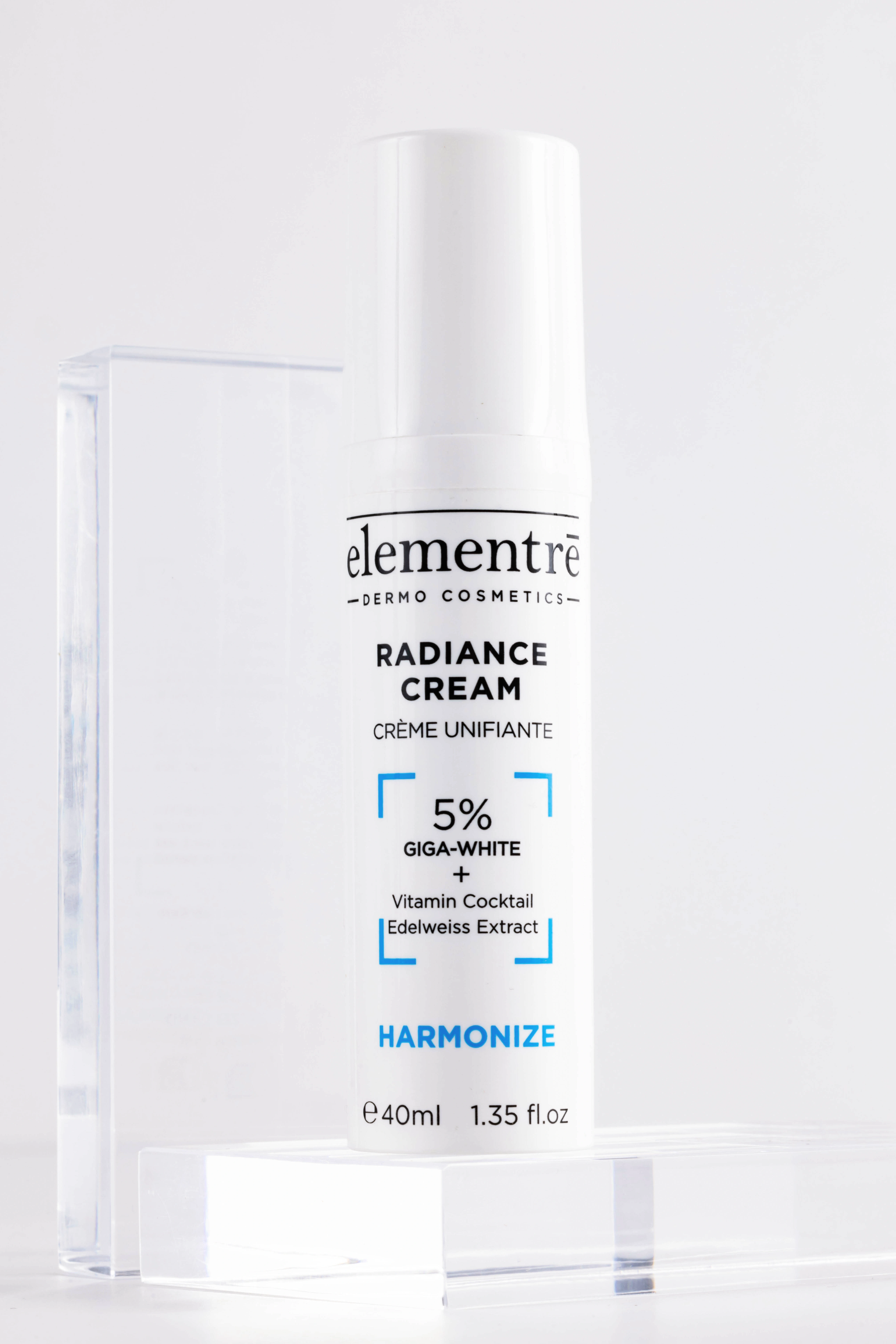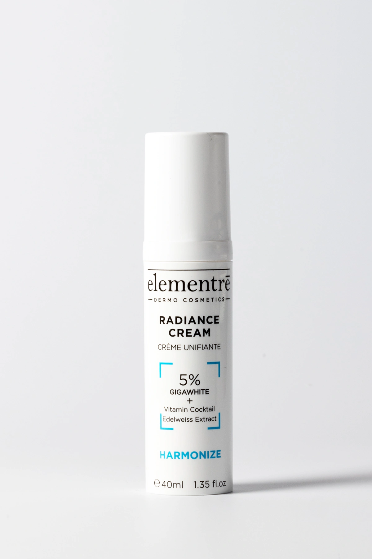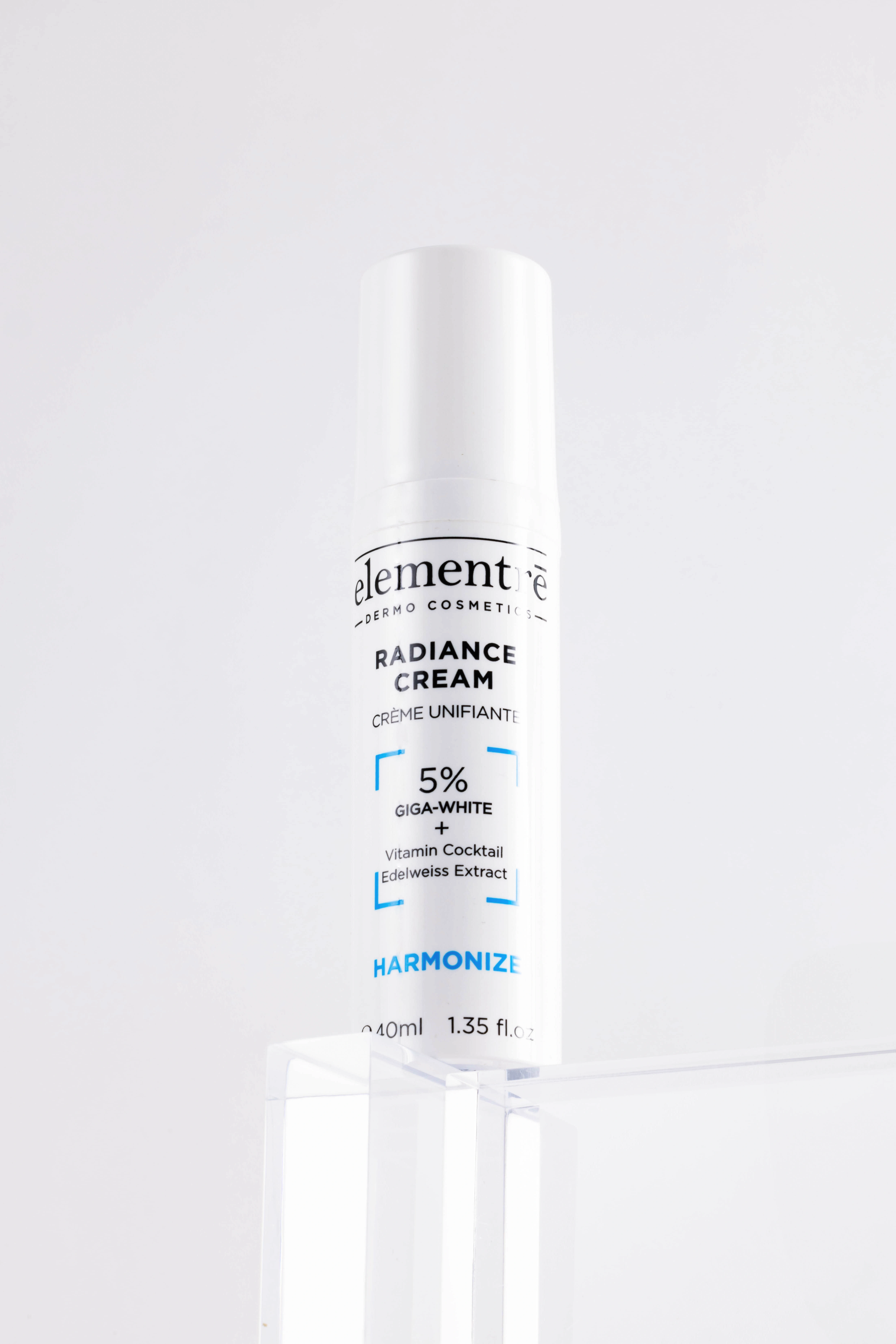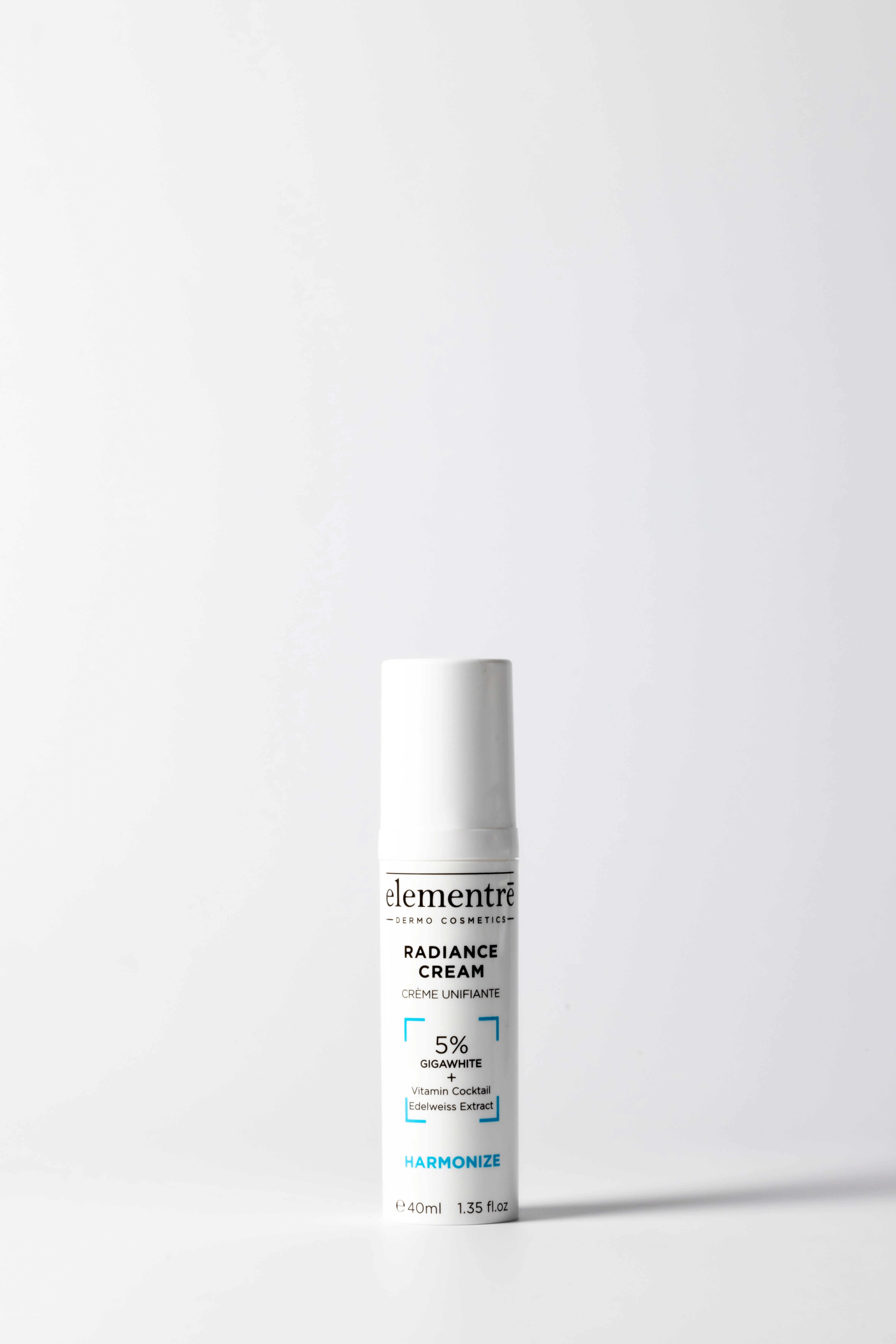5% Giga White Complex (cowslip, primrose, lemon balm, mallow, peppermint, alpine speedwell, lady's mantle, alpine yarrow), 2% Vitamin Cocktail, 1% Edelweiss Extract.